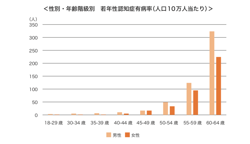 ※出典:日本医療研究開発機構認知症研究開発事業「若年性認知症の有病率・生活実態把握と多元的データ共有システム」(令和 2 年 3 月) より作成